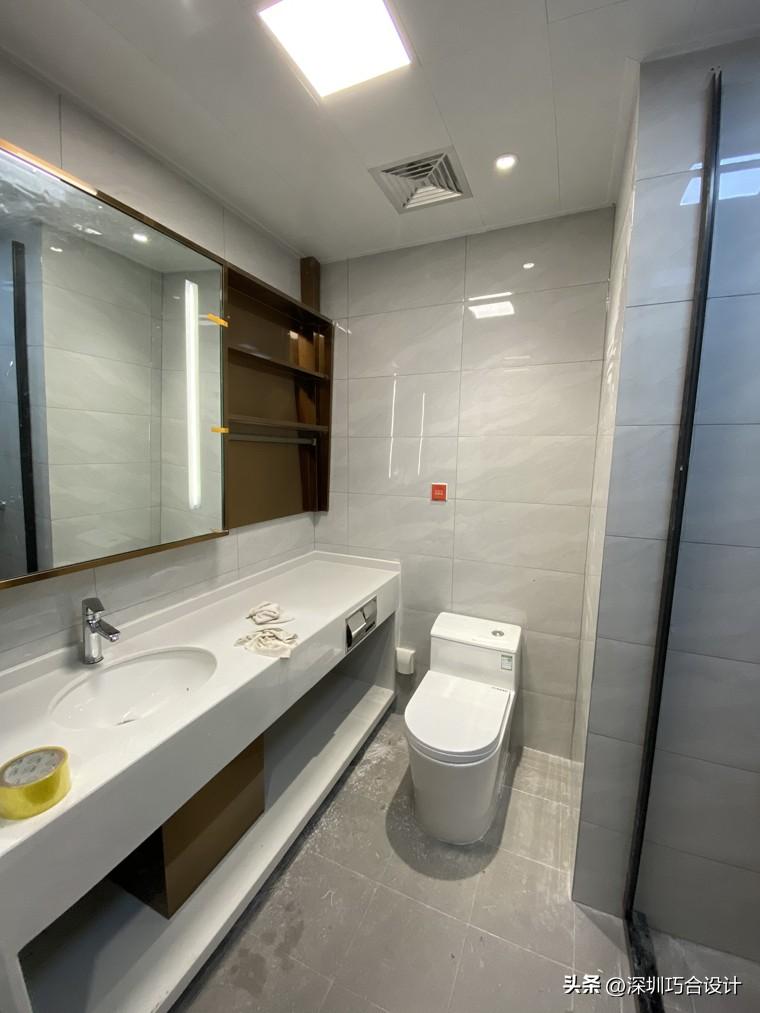 ⑤在施工工艺上,采用防水防污抗菌的医用壁布,全屋的木质尽可能采用集成化家具由工厂定制,不仅品质高,还更省时间。缩短了施工周期,减少了噪音污染;四周采用固定石膏板吊顶,中间采用可拆卸拼装板,便于后期内部管网维修。